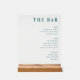This wedding menu card features a clean, minimalist design with centered text and ample white space for an elegant look. The muted teal color palette adds sophistication against the off-white background, while the serif font enhances readability and charm. Organized into sections for beer, wine, and spirits, it offers a clear hierarchy of information. Perfect for weddings or upscale events, this design conveys a refined and professional atmosphere.