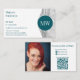 A graceful wave shape dips across the right third of the card, revealing a striking black-and-white bamboo photograph. Softened by a 50% white overlay, this image symbolizes growth and resilience. At the curve of the wave, a teal circle showcases your initials, acting as a signature element of your personal brand.