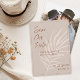 Announce your big day in style with this terracotta boho save the date card. Featuring a warm earthy background, modern script typography, and a subtle palm leaf illustration, this design blends minimalist elegance with organic bohemian charm. Customize with your names, wedding date, and location for a personalized keepsake that sets the tone for your celebration. Perfect for rustic chic, modern, or botanical weddings.