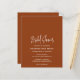 Modern boho terracotta / copper / pumpkin colored budget bridal shower invitation featuring a simple design with the event title in an elegant script typography and your event details in a minimalist sans serif font. This chic invitation is great for a fall / Halloween bridal shower.