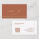 A Minimalist and Simple Terracotta color Lines business card featuring the handwritten script font and small classic clean typography with a QR code.