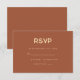This elegant and modern Minimalist Terracotta Wedding RSVP Card is designed to perfectly complement your contemporary wedding theme. Crafted with a focus on simplicity and sophistication, this high-end RSVP card showcases the captivating allure of terracotta, adding a touch of warmth to your fall wedding celebration. The sleek and minimalist design exudes a sense of refined taste, while the carefully chosen typography lends an air of understated luxury. The clean lines and minimalist layout create a pleasing visual appeal that will leave a lasting impression on your guests. For matching items, visit the Modern Terracotta Wedding invitations collection.