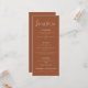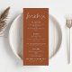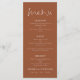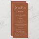 Minimalist Terracotta and White Text Wedding Menu. Available digitally and printed. An informal set typography in black for the main heading Menu complementing the rest of the text which you can easily personalise,