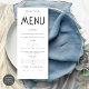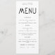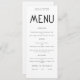 Minimalist Text Black and White Wedding Menu card. Available digitally and printed. Easily personalize the text to your own details which includes alternatives for your vegan or vegetarian options. You can change if you wish to any colors of your choice to match your wedding theme.