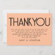 Minimalist Text Peach Wedding Thank You Available digitally and printed. A simple fully customisable pretty peach typographical design to thank your guests. Replace the sample photo on the back with your own favorite. You can also change text and background colors if you wish via the customise further option to match your wedding color theme.