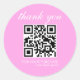Minimalist Thank You QR Code Script Pink Classic Round Sticker