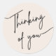 This minimalist “Thinking of you” sticker features a soft calligraphy style in neutral tones — designed to feel like a handwritten note.