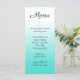 Create your own minimalist design white to bright turquoise ombre wedding menu.