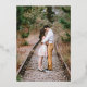 Elegant minimalist engagement party invitation with real foil and classic script typography. Photo template via Pixabay licensed under CC0 and must be replaced with your own photo