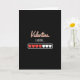 This Valentine's Day card shows a deep black background with a simple, modern layout that feels like a message on a screen. At the top, the word “Valentine.” appears in soft pink, written in a flowing cursive style and centered near the upper edge. Just below it, “LOADING ...” is set in white, all caps, and spaced out like a system message. Under the words, a progress bar is shown using six small heart icons lined up in a row. Four hearts are filled in red, and the last two are white outlines, which makes it feel like love is almost “ready” ❤️. The contrast of pink, white, and red against the black background keeps your attention on the message and the hearts. It’s a thoughtful card to give when you want to say you’re excited about someone and looking forward to what you share together 🥰. Hope it helps you share Valentine’s Day with someone special.