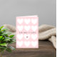 Minimalist Valentine’s Day card with soft pink background and white hearts.