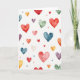 This design shows a white background covered with watercolor hearts scattered all over, so your eyes can wander and keep finding new ones. The hearts come in many sizes, from tiny dots to larger shapes that stand out like a clear “I care about you.” You’ll see deep reds, oranges, and yellows mixed with greens and blues, plus soft pinks and light purple tones. The paint looks gently washed in, with slightly blurry edges and see-through layers that make everything feel soft and tender. A very pale, almost white heart sits among the brighter ones, like a quiet reminder of steady love. There isn’t any text on the front, which leaves room for your own words and makes the message feel more personal. It’s a sweet choice for romance or close friendship, because it feels like love in all its different moods 🥰❤️.
