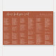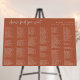 Modern script "please find your seat" graphic title, wedding seating chart foam board. Template provides 6 vertical rows for an alphabetized wedding guest list. Please note, each row can accommodate between 25 - 30 names. Background color shown in rust orange can be customized.