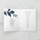 These unique wedding ceremony programs feature a minimalist wedding ceremony design with elegant midnight blue leaves—perfect for couples seeking a modern, refined look. This wedding ceremony pamphlet doubles as a personalized wedding ceremony booklet, with customizable template fields for your details, timeline, and trendy wedding program wording.