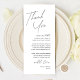 This is the Modern editable card, in minimalist script design, black and white theme, Place Setting Thank You Cards. Share the love and show your appreciation to your guests, when they sit down at their seat and read this personalised charming thank you place setting card. It's a wonderful way to kick off your special day celebration!