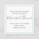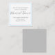 Minimalist, small enclosure cards for wedding rehearsal dinner. Square, business type cards are white with gray text and are meant to include with wedding invitations. Select the guests who will be invited to this special, pre-wedding party, and include a card with rehearsal dinner info in with their invite. Or use to direct guests to a wedding website and RSVP online. Cards have a sky blue line border that is easy to color to match your theme. Reverse is solid light gray.