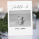 A different way to show your wedding table numbers. Designed to match the "Wedding Essentials - Classic" Collection. This template includes 1 picture that could be when you were kids or as a couple, table 8 in. classic elegant script typography, couple's names and wedding date. Get tables 1 - 15 in the collection