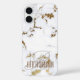 A clean and feminine phone case featuring a white and gold glitter marble effect with a refined minimalist look. Designed with a custom name and initial monogram, this layout gives a tailored, polished impression without being overstated.