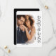 This minimalist white-and-black photo save-the-date announcement captures the essence of simplicity and sophistication. Featuring your photo surrounded by a white arched frame, with serif and cursive font on the front and your message on a black background on the reverse side.
