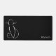 Minimalist White Cat On Black Add Name Desk Mat