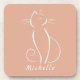 Minimalist white cat on a pink background coasters. Personalize this elegant coasters with your name.
