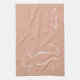 Minimalist white cat on a pink background kitchen towel. Personalize this elegant kitchen towel with your name.