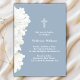 Minimalist White Flowers Dusty Blue Baptism Invitation
