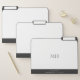 A set of file folders with a simple, minimalist design in white and dark gray with your initials and contact info.