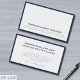 Simple, stylish business card design in classic typography in gray with a clean minimalist design featuring your firm's name, address, contact information, and website on the front, framed in a navy blue border. The individual's name, title and contact details on the back can be easily personalized for a unique and professional design statement to enhance your business presence. This business card exudes sophistication and professionalism, making it a powerful tool for networking and representing your brand.
