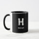 MINIMALIST WHITE ONE LETTER MONOGRAM NAME BLACK MUG