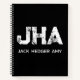 MINIMALIST WHITE THREE LETTER MONOGRAM NAME BLACK NOTEBOOK