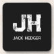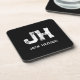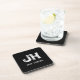 MINIMALIST WHITE TWO LETTER MONOGRAM NAME BLACK BEVERAGE COASTER