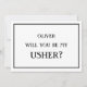 Minimalist will you be my usher proposal card. Simple wedding proposal card for the grooms party, black and white design. Ask your friend in style to be the usher. You can change the text for bestman , groomsmen, page boy..