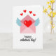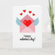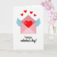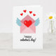 This greeting card shows a soft pink envelope with light blue wings, centered on a white background as if it’s ready to carry a note through the air. A ruby-red heart rises from the open top of the envelope, with a tiny star-like shine that makes it feel special. Above it, three smaller red hearts float upward, like love spilling out in the best way. The wings look gentle and airy, giving the picture a sweet sense of motion and care. Under the illustration, the words “happy valentine’s day!” appear in thin, flowing cursive-style lettering, placed near the bottom in a dark tone that’s easy to read. The simple setting keeps your attention on the hearts and the message, which makes it feel sincere and easy to give. It’s a meaningful choice for romance or friendship because it shows affection being sent out, not held back 🥰❤️. Hope it helps you share Valentine’s Day feelings with someone you care about.