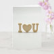 This card shows three light wood letters arranged to read “I ❤️ U” on a white background. The “I” sits on the left, the “U” on the right, and a red heart is centered between them. Each piece has softly rounded edges and visible wood grain, and they stand upright like small desk letters. Gentle light falls across the scene, creating faint shadows underneath and making the wood look warm and natural. The message is simple and easy to understand, which can feel more honest than a longer note. The text is made from the wooden shapes themselves, with the heart in bright red and the letters in pale wood, all placed right in the middle of the front. It’s a meaningful card to give when you want to say “I love you” in a quiet, steady way 🥰❤️, and it’s a sweet way to share Valentine’s Day sentiments.