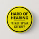 This vibrant button features the slogan 'Hard of Hearing, please speak clearly' in an easy-to-read bold black font. You can edit the text as needed. The background is bright yellow to grab people's attention. A great gift for people who wear hearing aids. ⭐ For more disability pins, visit my store: Zazzle.com/Elder_Vitality ⭐ For custom orders, message me on Zazzle