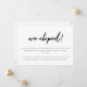 Minimalistic Black & White Script Wedding Elopement Announcement. Customize with your elopement message for family and friends on the front, and add bride and groom initials to the back of the card.
