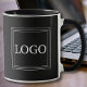 Minimalistic and Bold Logo Mug for all trades. Add your logo, square, round, landscape or portrait, all fits. The Black background and duo-tone makes it bold ond modern.