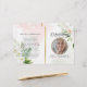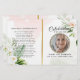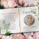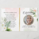 Customize this modern, elegant funeral program with your own photo and text to create a special tribute to your Beloved. An 'In Loving Memory' program featuring Floral Foliage botanical and gold accent memorial program. On the front cover is a photo of your loved one, their name, dates, the memorial venue, and the date of the event. On the inside is an obituary and order of service, and on the back is a thank you note and the venue of the