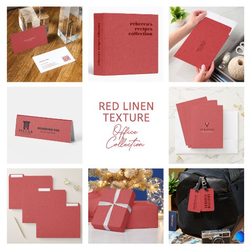 Simple burned red linen texture background, white typography on the front, and reversed colors on the back.