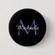 Minimalistic blue circle modern monogram with blue initial and white name on black. Personalizable custom name with a serif initial behind on a black color.