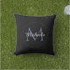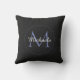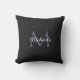 Minimalistic blue circle modern monogram with blue initial and white name on black. Personalizable custom name with a serif initial behind on a black color.