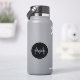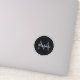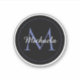 Minimalistic blue circle modern monogram with blue initial and white name on black. Personalizable custom name with a serif initial behind on a black color.