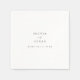A minimal and elegant wedding themed napkin, designed in black and white, with modern typography, and some script lettering. Personalize with your names, wedding location, and date. Feel free to edit further, such as changing background colors, text colors, etc., by clicking on "personalize this design," then "edit using design tool."