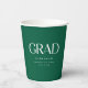 Minimalistic Dark Green Custom Graduation Party Paper Cups. Modern and simplistic, dark forest green graduation party paper cups, designed with "grad" in large, bold typography. Personalize with graduate's name, high school, college or university name, and year of graduation below.