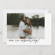 Minimalistic Elegant Script Photo Pregnancy Announcement. Customize with your choice of photo on the front, and your additional details, such as baby's due date, for family and friends on the back.