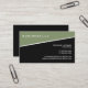 A modern, minimalistic business card design featuring a slanted green color block above a black pinstripe color block. A simple modern design with a masculine feel. Great for a variety of business types.