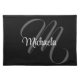 Minimalistic modern monogram initial name black white. Personalizable custom name with a cursive initial behind on a black color.