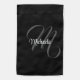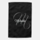 Minimalistic modern monogram initial name black white. Personalizable custom name with a cursive initial behind on a black color.
