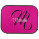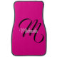 Minimalistic modern monogram initial name black white. Personalizable custom name with a cursive initial behind on a hot pink color.